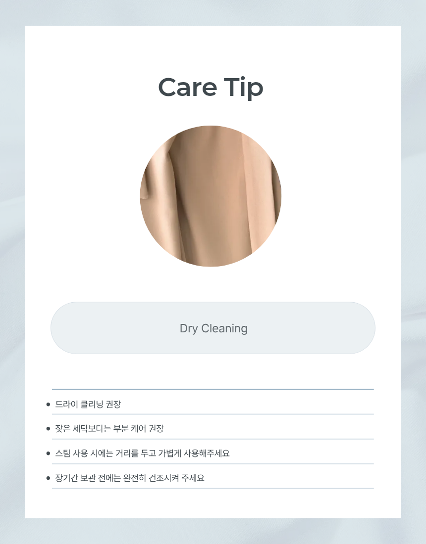 부드러우면서도 힘 있게 떨어지는 실루엣이 특징이에요.